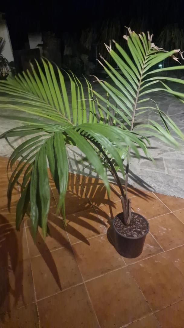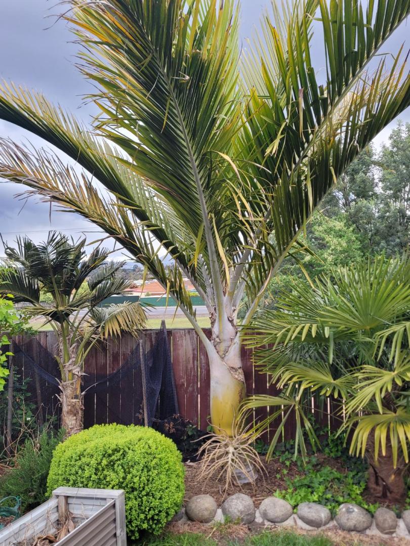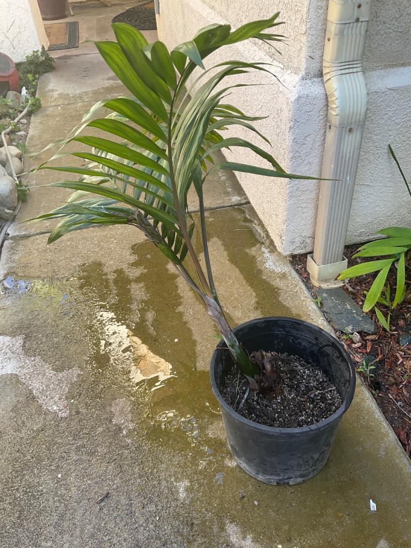 For a bit of perspective on speed of growth for these . This was after getting home from my first trip to @DoomsDave . It had somehow gotten loose in its pot from the trip home . I kept it in a shady spot under our pergola for a week or so and it stood straight up and got a solid footing all on its own. I knew , at that point , these are fast growing palms. Compare with the photo above and keep in mind , a fairly recently planted small palm. It is in mostly shade as I am inland a bit and it can get quite warm here . A much stronger grower than R. Sapida in warm climates . HarryIMG_0336.thumb.jpeg.192d228b33d9caa4b5618d3fcf73f1a0.jpeg