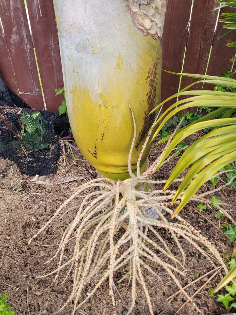 To demonstrate @Jim in Los Altos technique. This is a month or so ago . My Roystonia Oleracae . The frond was about done . A little work with a pole saw and the dying frond was cut . A while later the leaf base had dried out and came down without damage to any neighboring palms ….or humans! HarryIMG_1003.thumb.jpeg.116101f558599799d4888317eb8e7fbf.jpeg