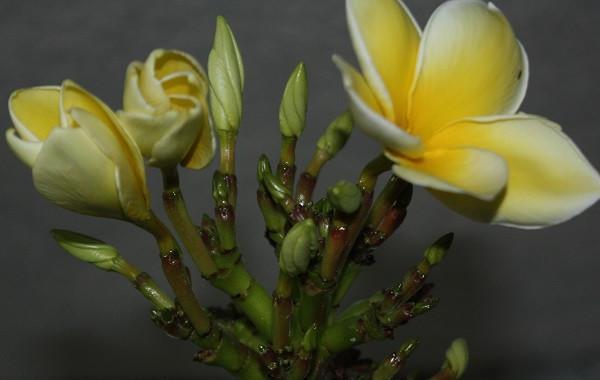 No but I also believe your plumeria is a different species than mine. I have rubra and alba but their leaves are not like yours. What species is it?