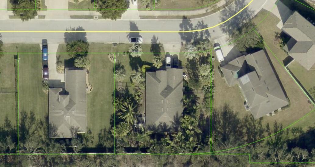So I set out to put in cold hardy palms to the north(front yard), wind block to the east and west and I did have a 7; solid fence and some oaks behind my yard in a common area that break wind and then I put in fast palms in the tender area to the south in back for canopy.  In the overhead photo, its easy to see the palm nuts yard.  N is to the street.  The most tender palms in front take to 26F and are sun lovers that get a lot of summer sun, all day pretty much.  Sunny areas are harder to keep wet in sandy soil so those in front have big deep root systems and are generally waxy of leaf( Bismarckia, copernicia, sabal uresana).  In back are the more tender 10a palms and they are bunched to keep things warm,  Serenoa repens and to a lesser extent dwarf bamboo help with windbreak to the east and west and are up to 12 foot tall and laugh at cold here.