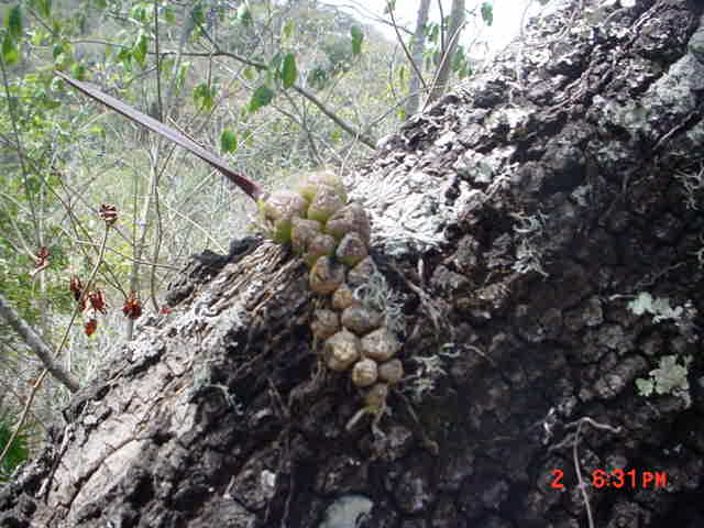 Dick, I dont honestly know the names of the orchids and thats gospel, they are native  to upper elevations of Tamaulipas,and san luis potosi. the little yellow flowered ones and the ones we started calling onion bulps were epiphytic(sp?) the corn cob one was growing on the ground.   and yes they dont seem to mind the cool weather.
